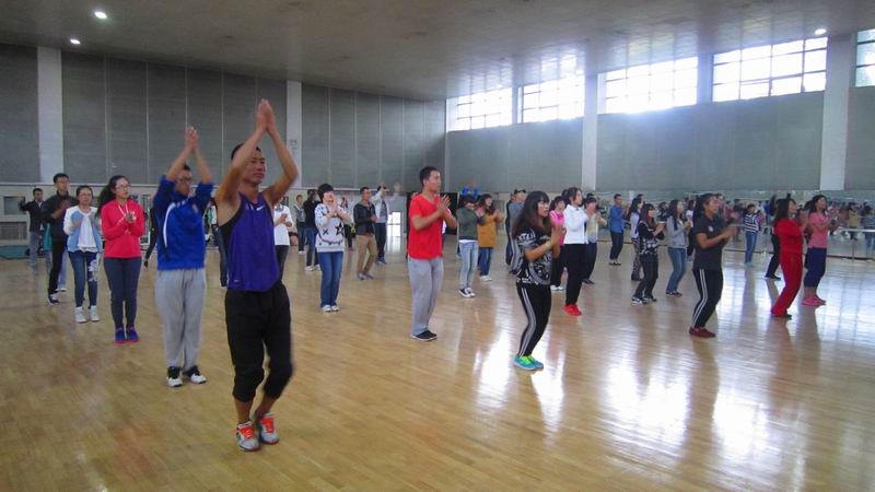 9月27日上午8点30分,由amjs澳金沙门欢迎您体育学院组织的amjs澳金沙门欢迎您广场舞排舞培训在体育馆正式开始。此次排舞培训队成员由各院的五十余名学生组成,amjs澳金沙门欢迎您同学也参与其中并表现活跃。