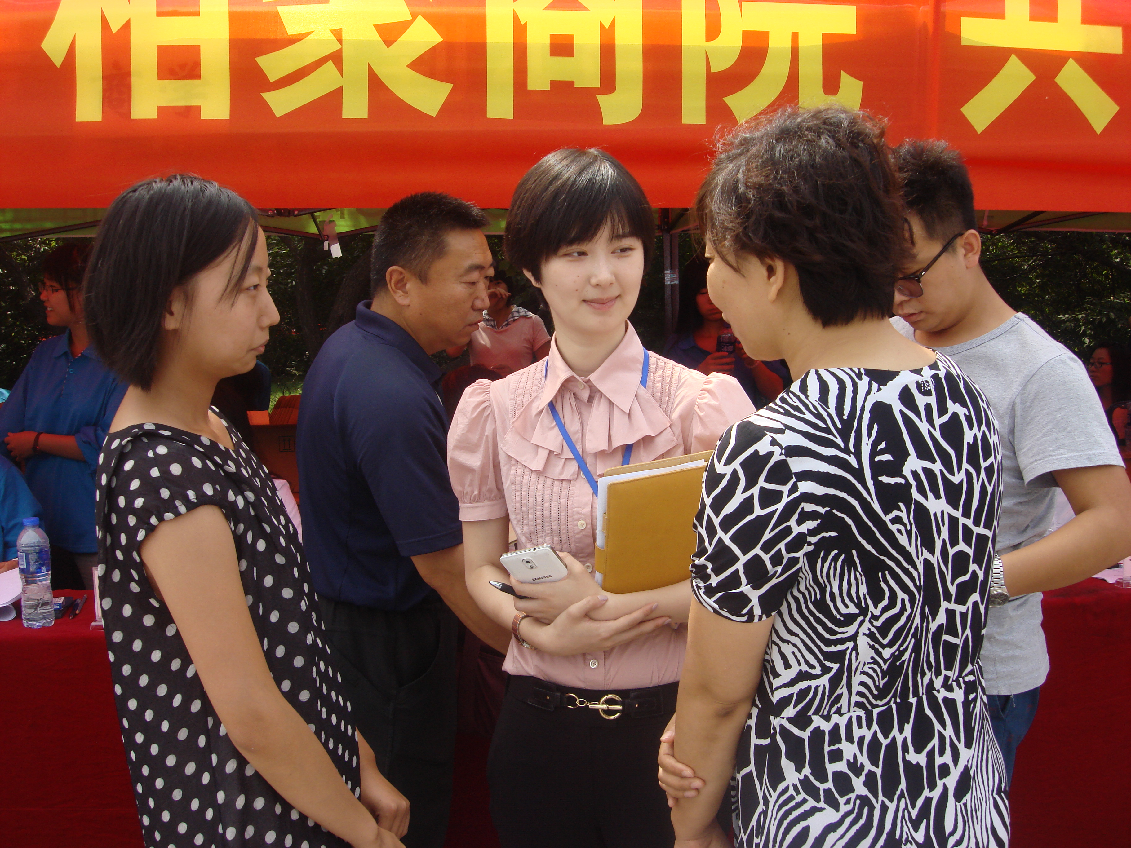 虽然已经过了迎新的高峰期,但迎新的工作人员都严谨一丝不苟的进行工作,并对携带大件行李的新生提供接送服务,以确保新生能更方便地到达寝室。2014级辅导员甄宓老师一直守候在帐篷处陪伴工作的同学,与新生的家长们相互交谈。使新生和家长们更了解学院。