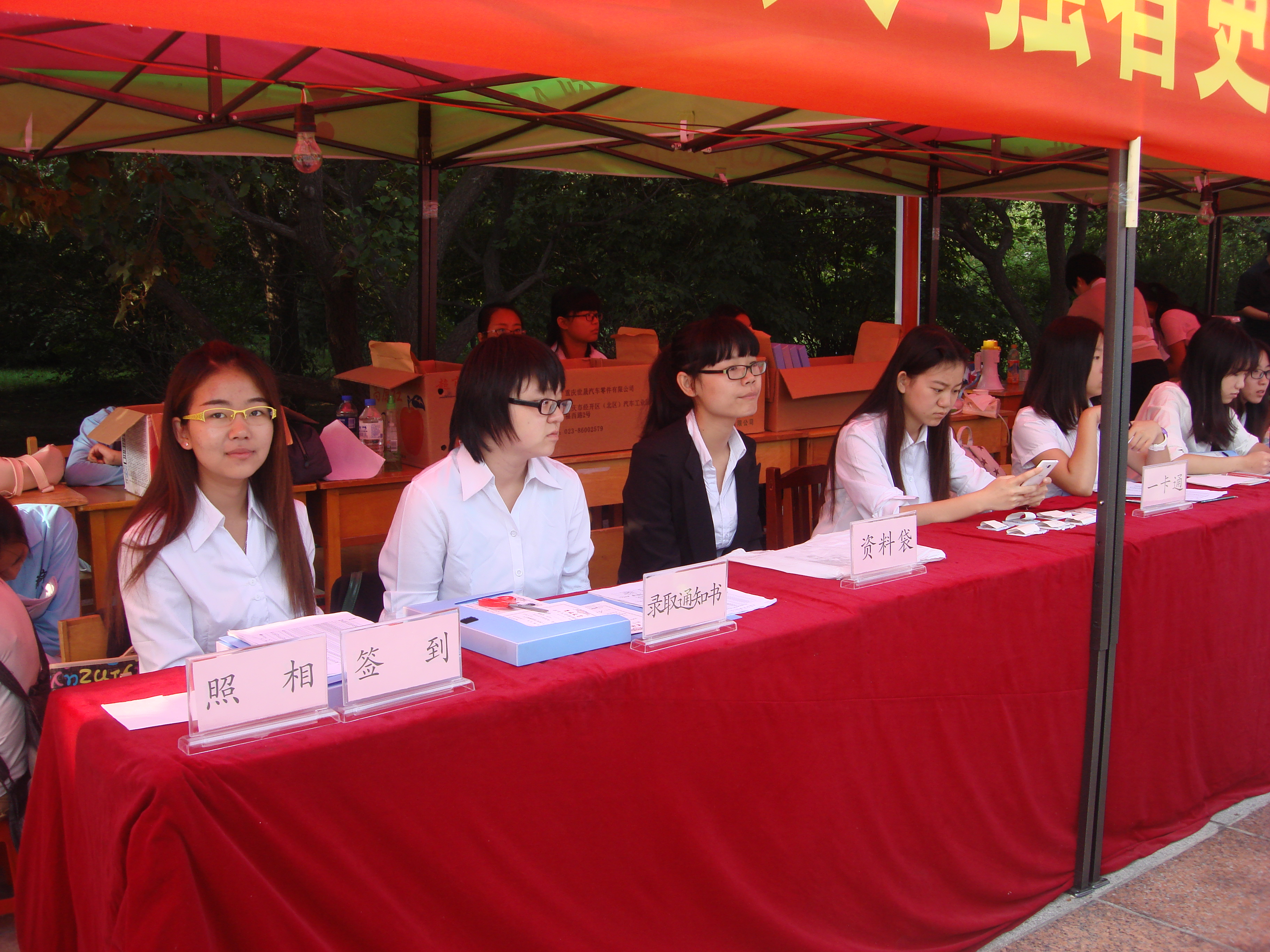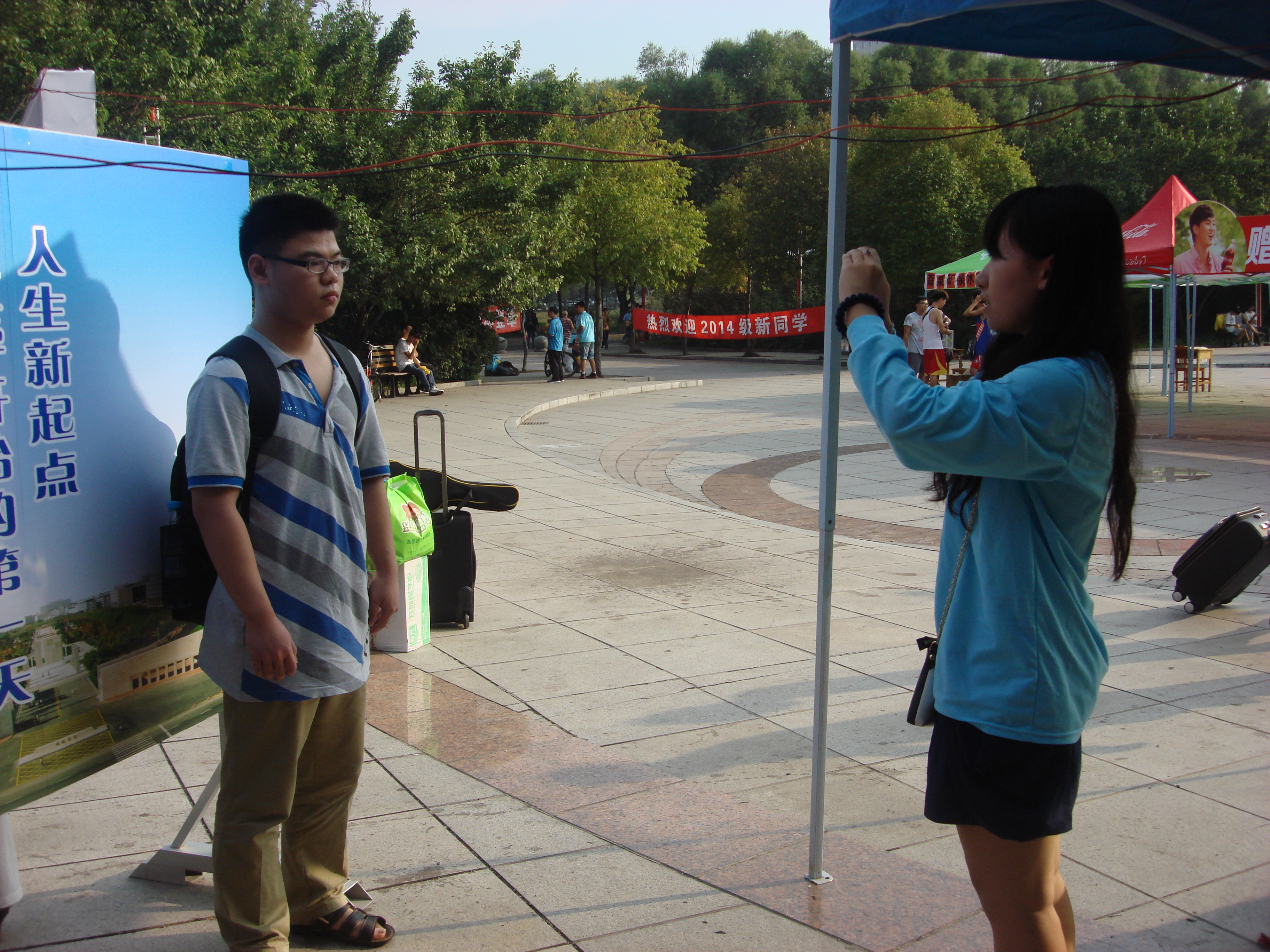在绿色通道处,2014级辅导员甄宓老师认真为新生们解决有关助学贷款等事宜,并对少数民族的新生们进行讲解和指导,使他们更好地适应大学生活。2013级辅导员金博老师也全程守候在迎新地点,为有需要的新生们答疑解惑。