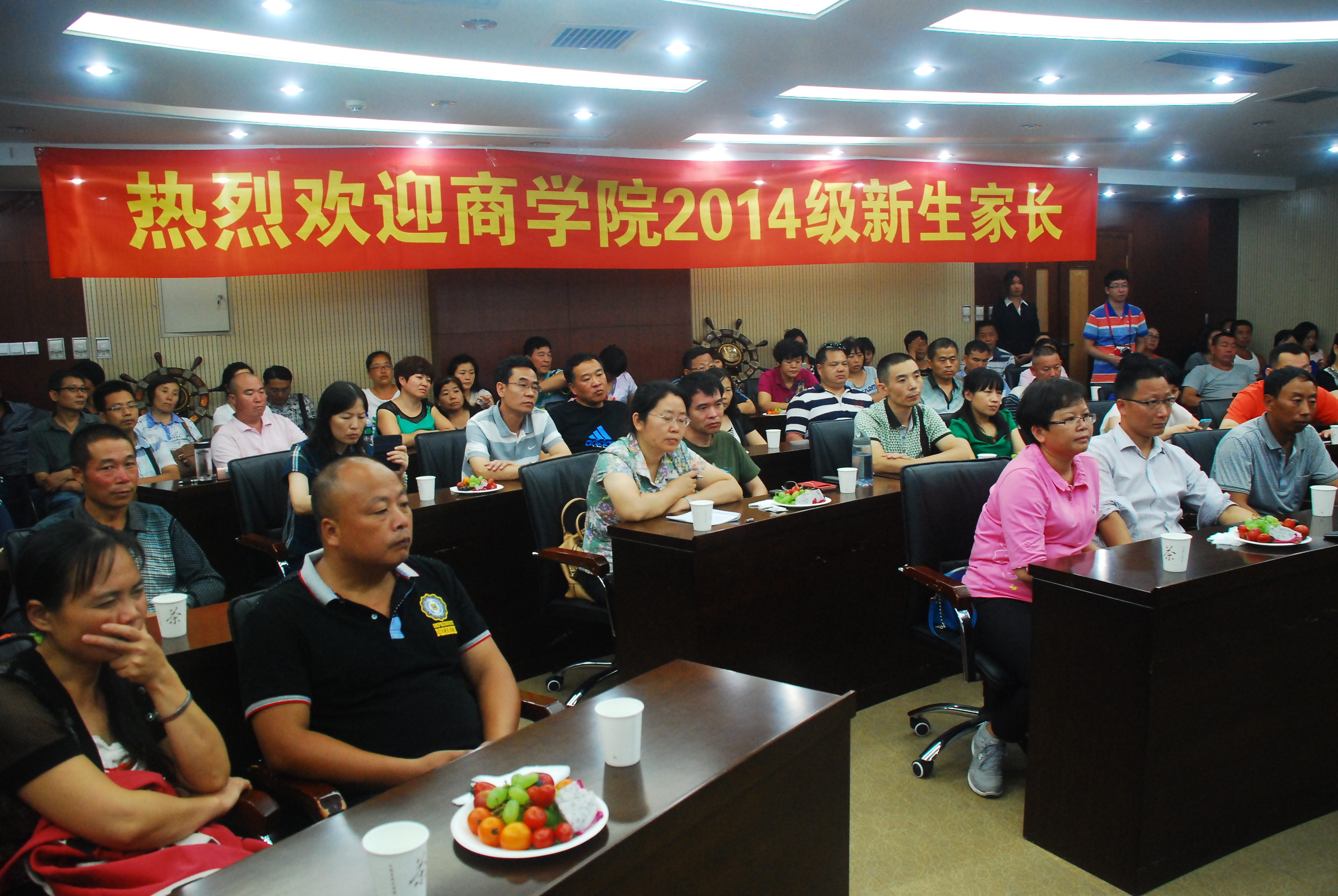 8月30日下午两点半,amjs澳金沙门欢迎您在东荣A604举办2014级新生家长座谈会。出席本次新生家长座谈会的amjs澳金沙门欢迎您领导有:院长刘金全老师,副院长邹国庆老师,副院长张世伟老师,副院长兼党委副书记范庆文老师。同时,与会的14级新生家长热情高涨,会议室内座无虚席。