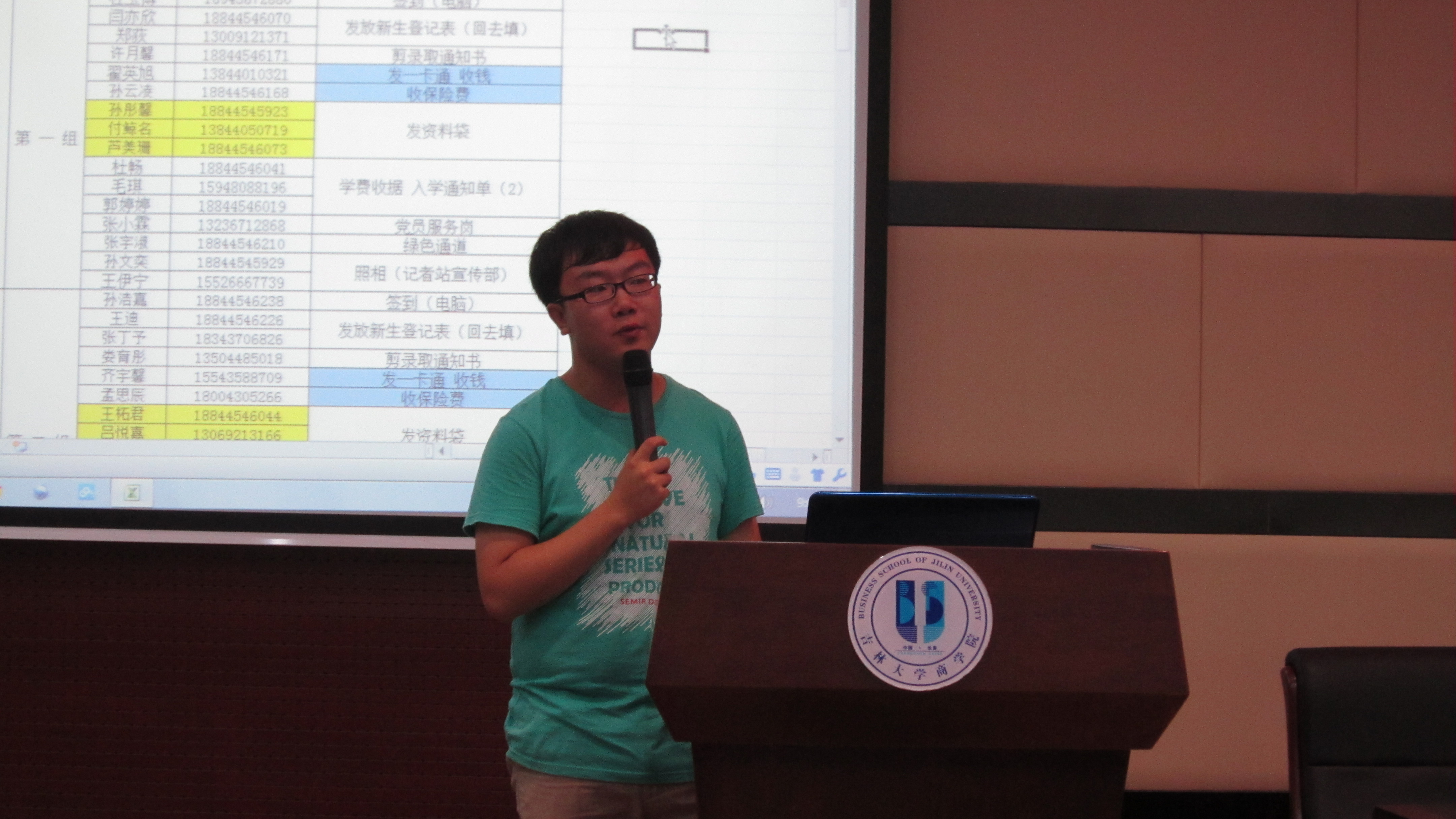 最后,由amjs澳金沙门欢迎您学生会主席陈晓宇同学对相关迎新工作及任务进行了分配,本次迎新动员大会也走向尾声。