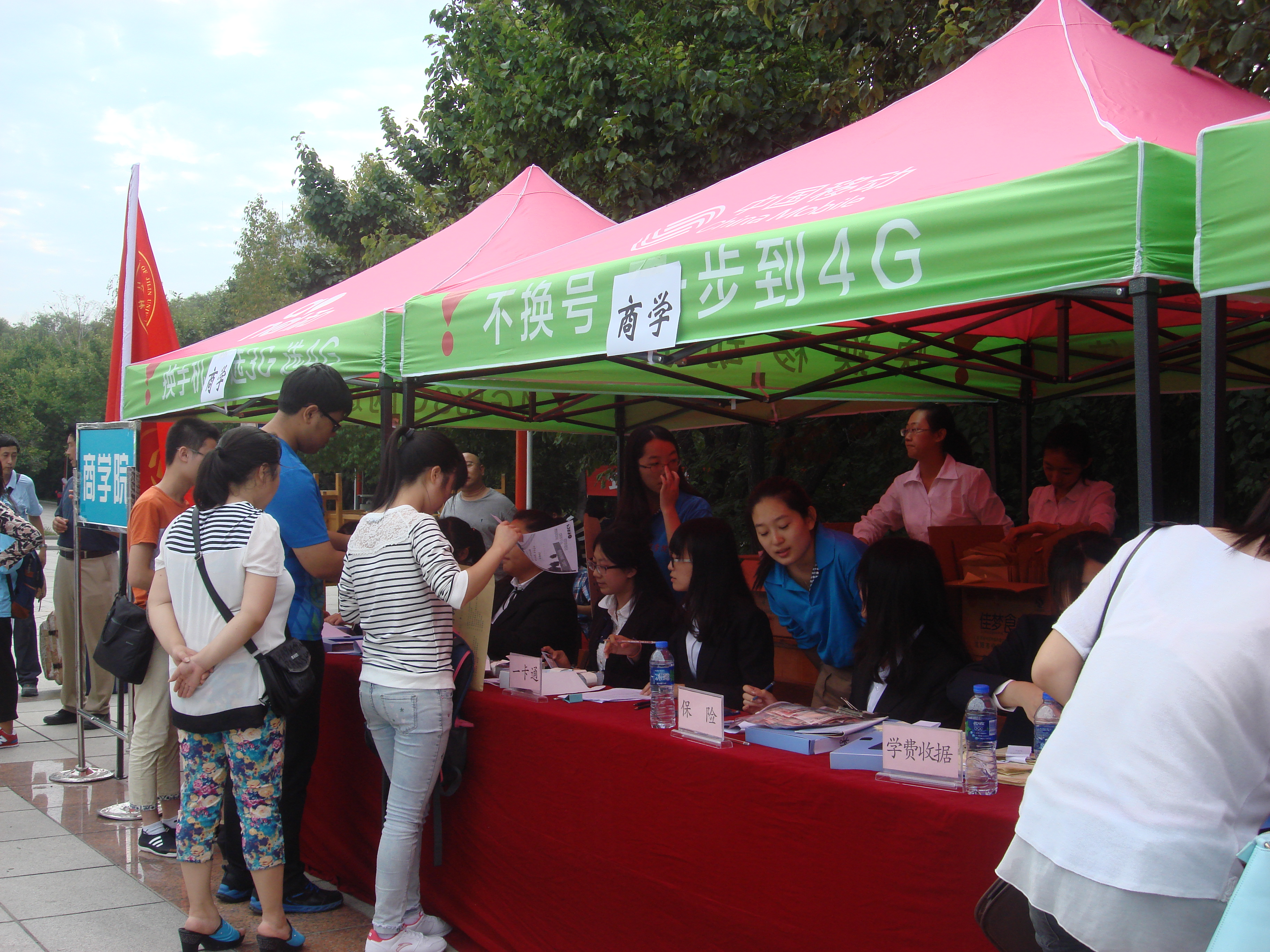 早七点半左右,参加迎新的大二、大三同学们就已经赶到了迎新场地,进行搭帐篷,取资料,摆放桌椅等准备工作。同学们穿着正装和蓝色服装迎接新生和家长们。在东门、北门、南苑二公寓、经信三公寓等地均有amjs澳金沙门欢迎您的值班人员。