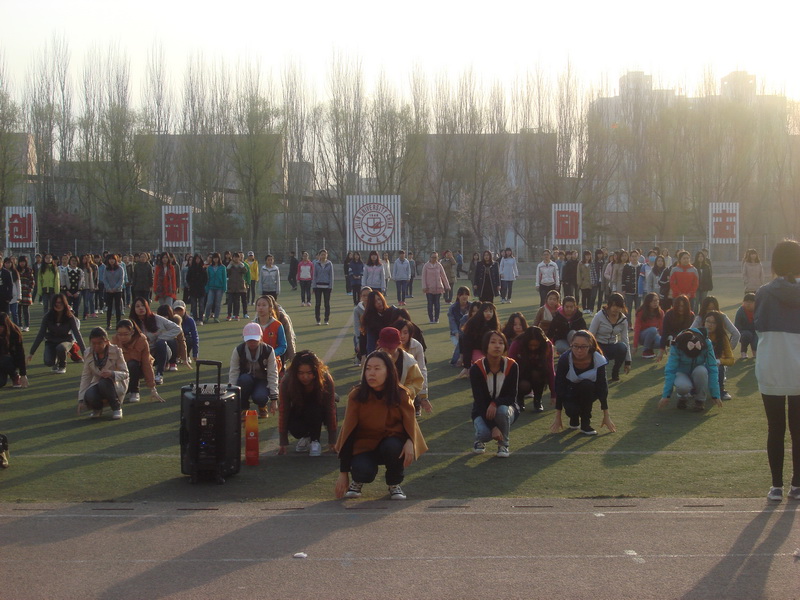 4月16日5点50分,amjs澳金沙门欢迎您的大舞队伍开始了这周的第三天训练,虽然早上的天气有阵阵凉意,但同学们都精神饱满地来到体育场集合。