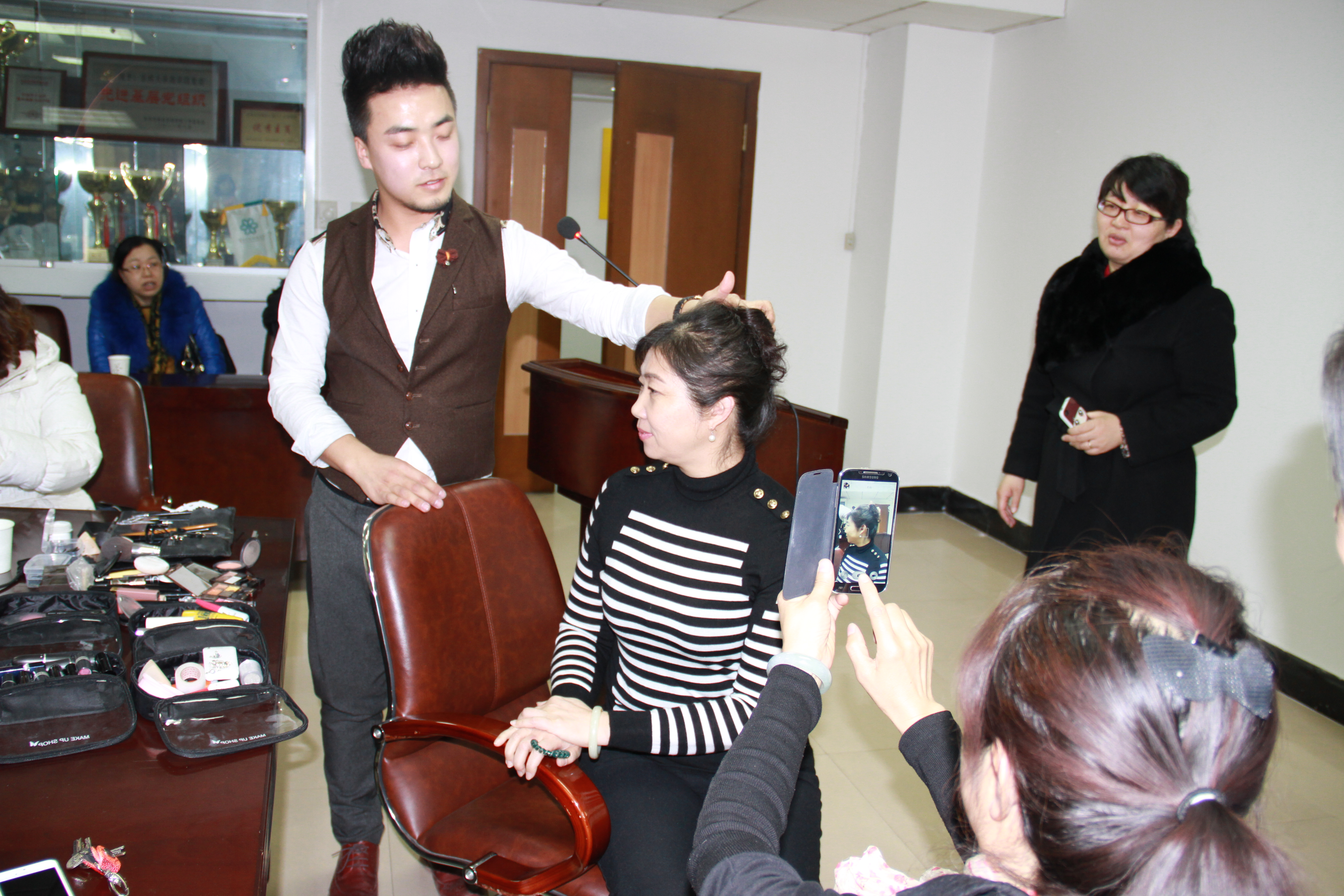 接着,专业彩妆师阿木先生从化妆品的选择、底妆、眼妆、腮红、唇妆等方面与大家细致地分享彩妆技巧,并为现场老师量身打造了多款个性化的妆容及发型。