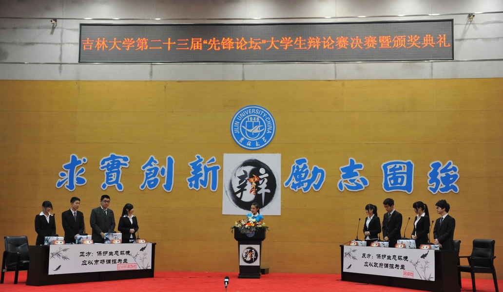 最精彩的莫过于针锋相对的攻辩环节,双方二辩、三辩机智灵敏,就政府和市场两个主体对经济利益和公众利益的侧重点以及自然资源的产权问题进行了讨论,思想的碰撞、伶俐的词语引起现场观众的阵阵掌声。反方二辩在攻辩回答中对辩题的深入剖析,给人留下了深刻印象。短兵相接的自由辩论依然是全场关注的重点,双方几位辩手虽然风格迥异,但都用自己的机智给我们带来惊喜。总结陈词阶段,反方四辩理性分析了对方辩手的逻辑线,同时也明确指出对方的错误,即经济利益和保护环境往往不能和谐,反而很大程度上是背离的。一席话有理有据,令人信服。