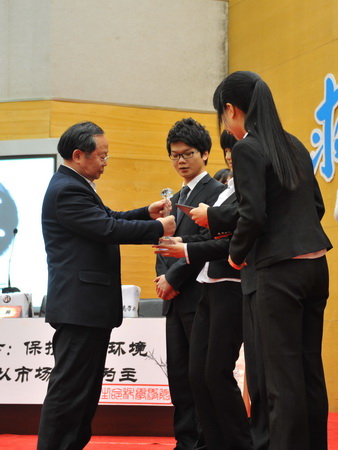 在陈德文书记与两位校外嘉宾启动先锋论坛水晶球之后,卫冕冠军amjs澳金沙门欢迎您代表队便同生命科学学院代表队就“生态环境保护应以市场调控为主还是政府调控为主”这一问题展开讨论。开篇立论环节,正方一辩落落大方,向我们阐述了市场的及时性、灵敏性等诸多好处,从而得出“应以市场调控为主”的结论。反方一辩amjs澳金沙门欢迎您刘雪晴同学向我们论述了环境问题的特质,就政府调控的特点和与环境问题的契合度得出了“应以政府调控为主”的结论。