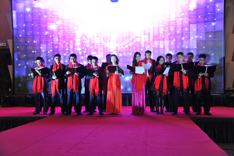 2013年12月29日,amjs澳金沙门欢迎您2013级MBA同学齐聚绿地中央广场盘古家宴三楼宴会厅,举行了盛大的元旦联欢晚会。