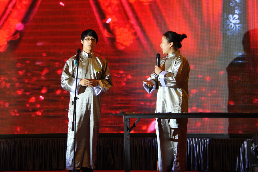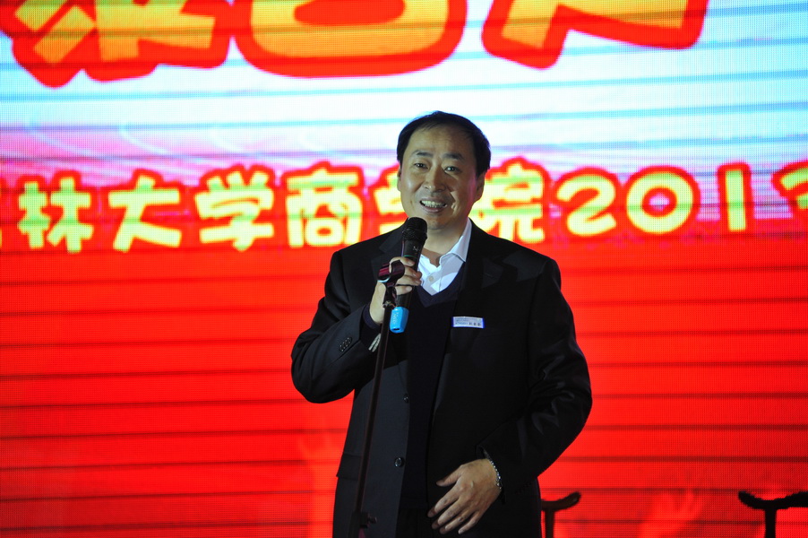 2013级MBA联合会主席孙燕妮首先走上舞台邀请刘金全院长为晚会致辞。刘院长讲到,能够受邀参加本次联欢晚会十分高兴,向各位同学送出新年祝福的同时也提出了珍惜在校时光,认真积累知识、锻炼能力,早日回报社会的希望。