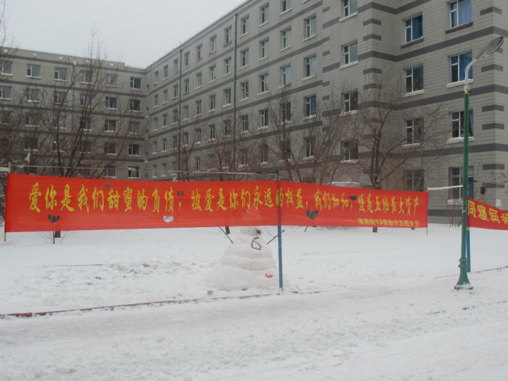 当然男生们做的不只是挂条幅而已。在每一年的女生节中,男生们都会在照顾女生的方式上不断创新。今年的女生节更是令女生们倍感温馨。肯德基爱心早餐,似乎已经成为了amjs澳金沙门欢迎您女生节的标配。每天的清晨,都会有男生们出发前往肯德基订购早餐,然后送到女生寝室附近的食堂中,等候女生们的到来。工商管理二班的爱心占座,更是让女生们感到幸福和丝丝甜蜜。市场营销班更是通过0点短信的方式让女生们体会到家的温暖,在吉大,在amjs澳金沙门欢迎您,在这个温暖的大家庭中。