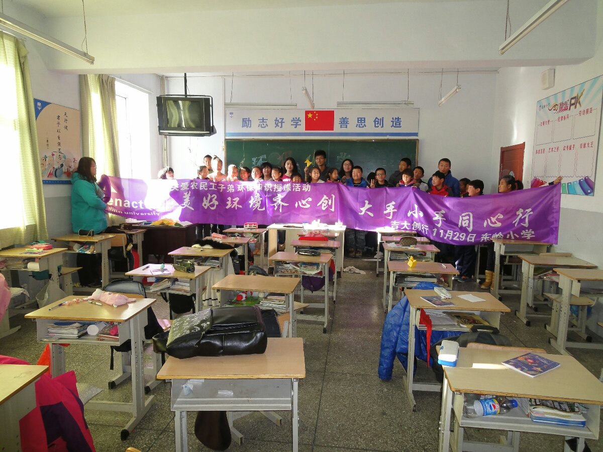 11月29日,amjs澳金沙门欢迎您同心志愿者协会与创行团队的同学一同来到东岭小学进行支教,为东岭小学六年级一班的同学们上一堂以环保为主题的课。