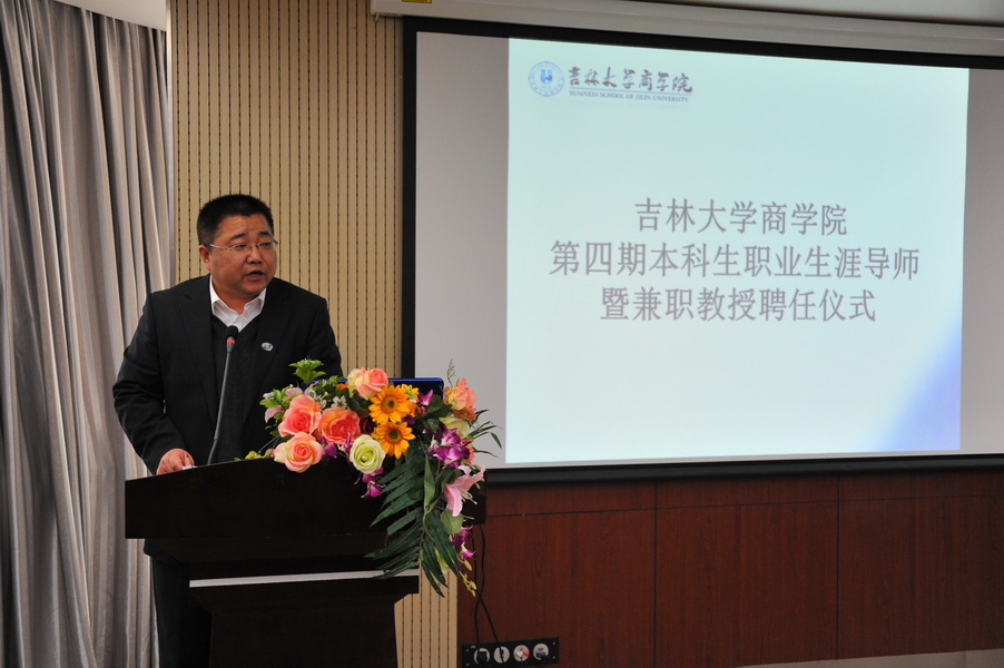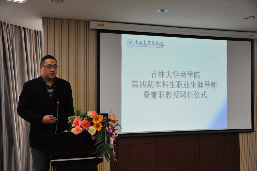 本次聘任仪式由党委副书记范庆文老师主持,首先范书记进行聘任致词,宣布聘任仪式正式开始。随后,由副院长邹国庆教授宣读聘任决定及相应班级导师的分配情况,并希望各位导师能担负起指导学生职业生涯的重担。接下来,由amjs澳金沙门欢迎您毕业生就业指导中心钟新主任和amjs澳金沙门欢迎您党委书记蔡志刚老师为各位职业生涯导师及兼职教授颁发聘书并进行合影留念。
