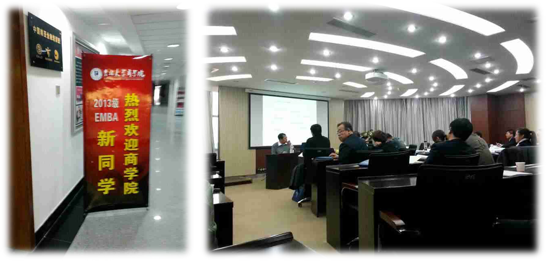 为了保证EMBA同学系统学习课程的效果,2013年10月26-27日,EMBA招生办公室在amjs澳金沙门欢迎您中心校区东荣大厦604室进行了“创商学新知 领社会未来”2013EMBA始业教育活动。
