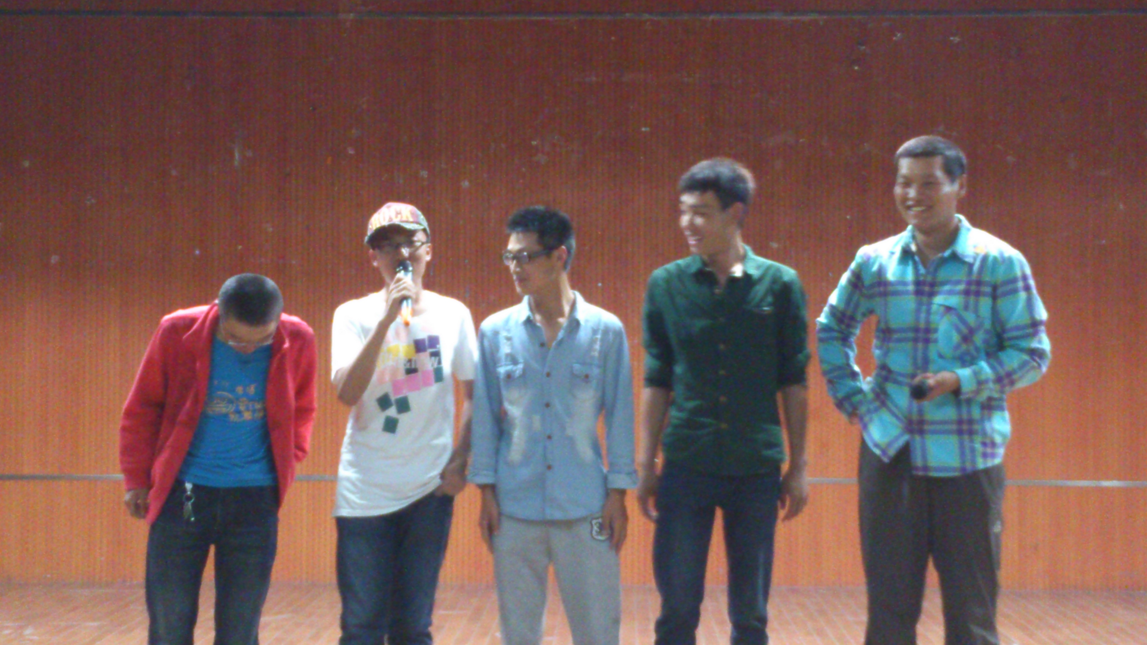13级的同学们非常的有激情,许多同学都上台来一展风采。刚开场,13级郭健博同学为大家演唱了一首《K歌之王》,场内的火热气氛立刻被点燃了。接下来进行的是2013级所有同学以寝室为单位进行自我介绍。13级人力班的同学们不愧是大学的新鲜人,每个人都活力四射的以自己的方式进行了自我介绍,全场洋溢着欢乐的气息。13级人力七班仅有的5个男生甚至被请上台去做自我介绍,同学们的风趣幽默让场内笑声不断。