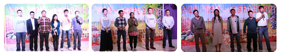 下午13:00,参加本次活动的老师、同学一百余人乘坐客车来到了目的地——双阳区黑鱼村葡萄园。园内葡萄的品种涵盖了东北三省地区全部的十二个品种,九月是收获的季节,在葡萄园主张师傅细心的讲解下,老师同学们收获的不止是葡萄的美味,更实际了解了自然采摘这种农业经营方式。同学们在互相分享果实的过程中也增进了友谊。随后大家前往风景秀丽的枫树湾生态园餐厅,在晚会开始前由拓展公司的张教练为大家开展了一次展现团队合作、挑战自我于一体的集体活动,大家在共同的经历中体验相互帮助与配合的乐趣,更进一步凝聚同学情谊。