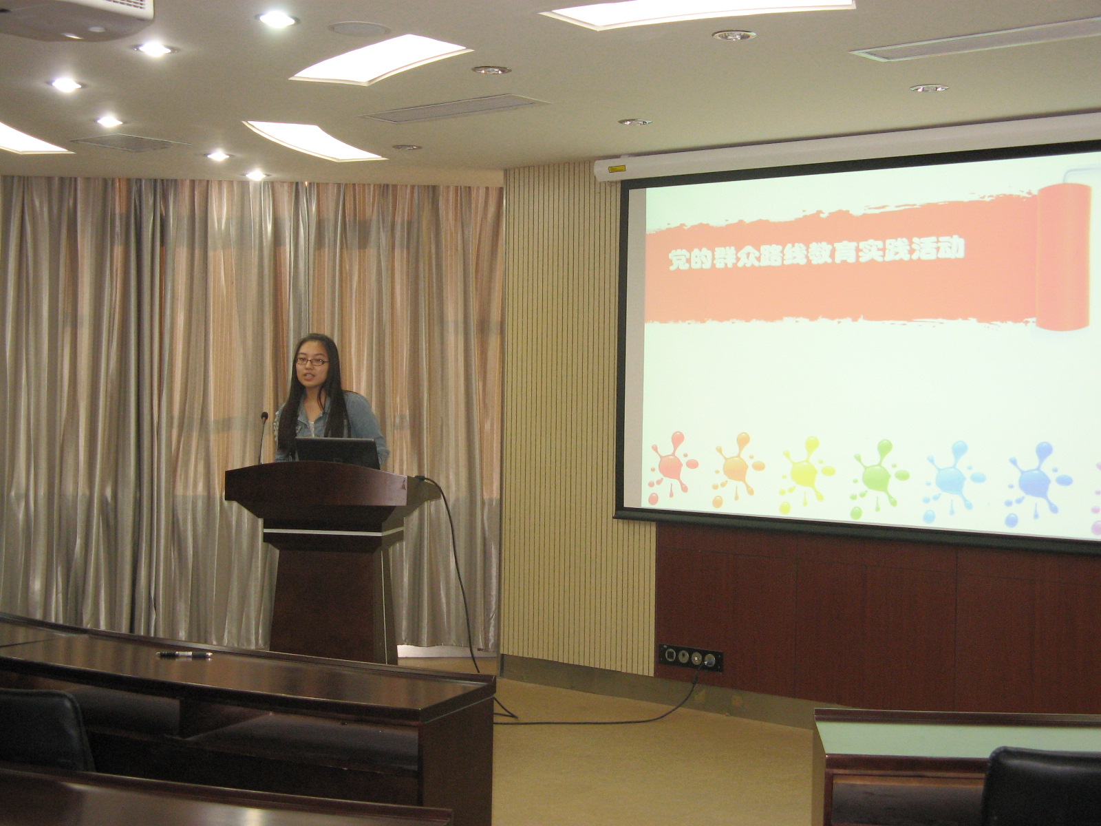9月5日,在东荣A604举行了“党的群众路线实践活动实施方案” 11级学生党员思想学习活动,11级辅导员金博老师出席了此次党员活动。