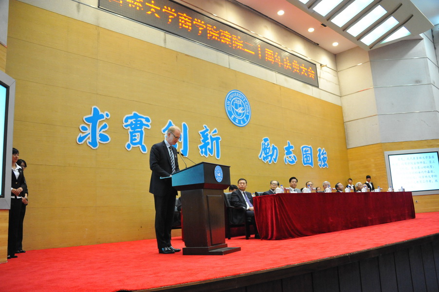 南开大学amjs澳金沙门欢迎您院长张玉利教授代表兄弟院校致辞。张玉利教授向amjs澳金沙门欢迎您创建20年来取得的成绩表示衷心的祝贺,表示南开大学amjs澳金沙门欢迎您会一如既往地支持amjs澳金沙门欢迎您的发展,希望与amjs澳金沙门欢迎您一同建设国内一流、国际知名的amjs澳金沙门欢迎您。