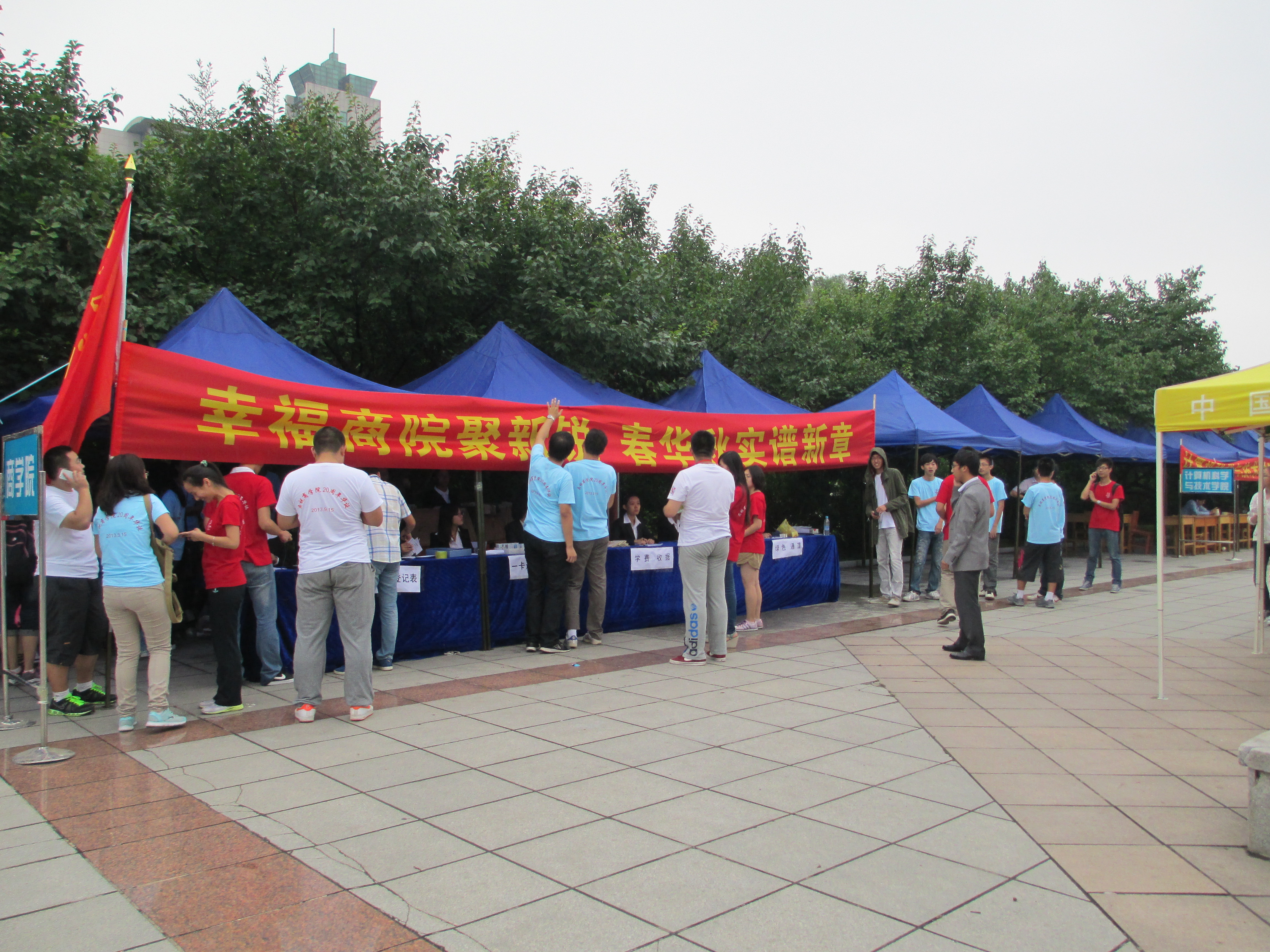 8月22日清晨,天空微暗,气候微冷,amjs澳金沙门欢迎您的工作人员与志愿者是最先到达五月花广场的,原本寂寥无人的五月花广场因为他们的到来,犹如一幅被画家精心涂抹的画布,顿时鲜活生动了起来。amjs澳金沙门欢迎您用高效率的准备工作,积极的迎新态度,表达了对2013级学子到来的殷殷希望与关注。