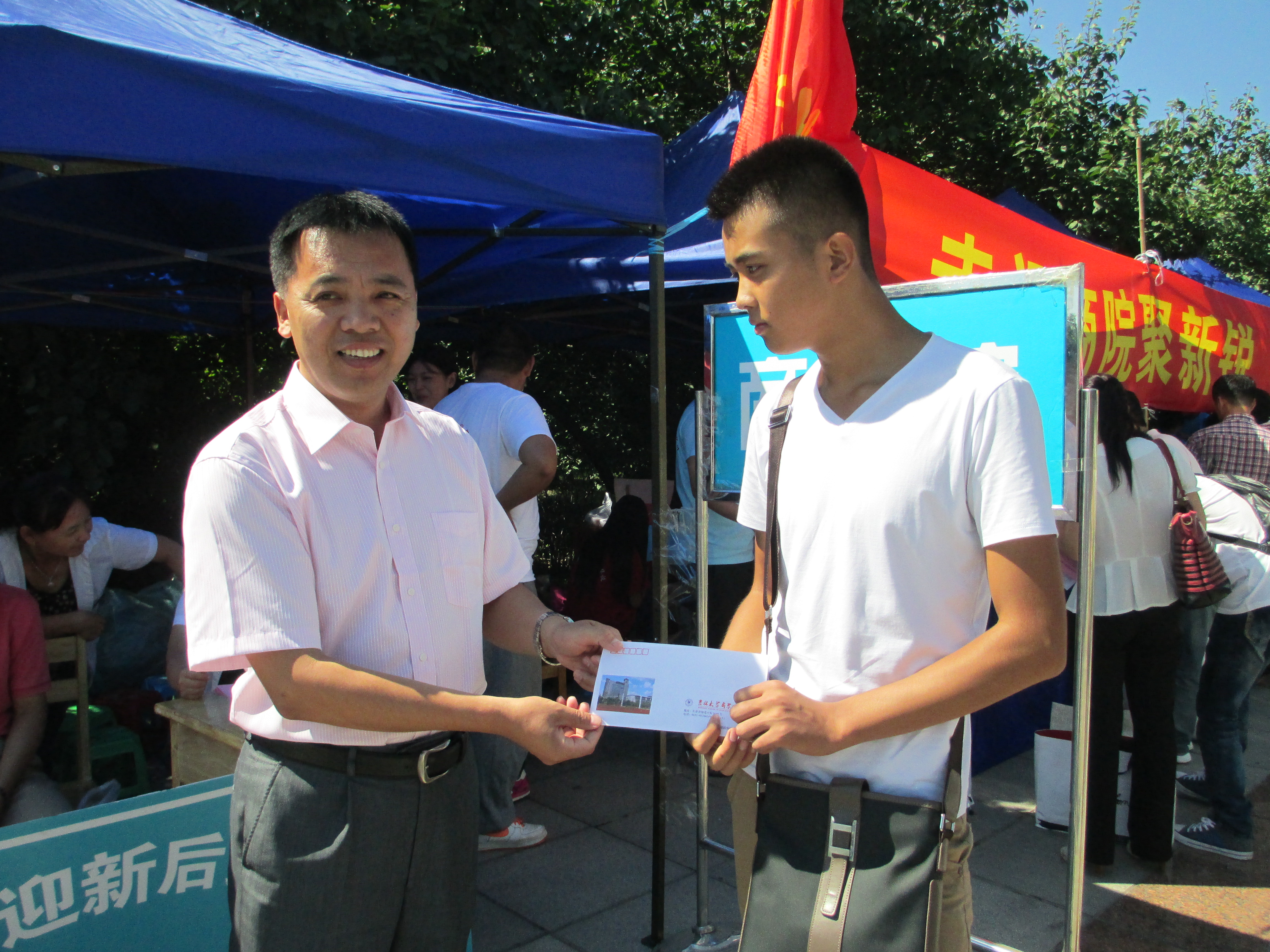 在报到现场,amjs澳金沙门欢迎您党委副书记兼副校长韩晓峰,amjs澳金沙门欢迎您副校长张向东等校领导,amjs澳金沙门欢迎您党委副书记兼副院长范庆文,13级辅导员金博均对李同学的情况进行详细了解后表示亲切关怀。还有吉林电视台等媒体也纷纷赶来对李同学及其母亲和13级辅导员金博进行了采访。