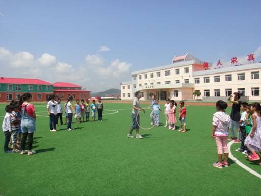 7月12日,我们到了安图县两江镇镇中心小学,他还有另一个名字——明德小学。一到这里,我就爱上了这个地方,有山有水,环境极美,每一处都自动成景。学校很大,条件很好,教室是楼房,操场是塑胶的,有投影仪,有展台,没有想象中的那么艰苦,我们很幸运也很幸福。