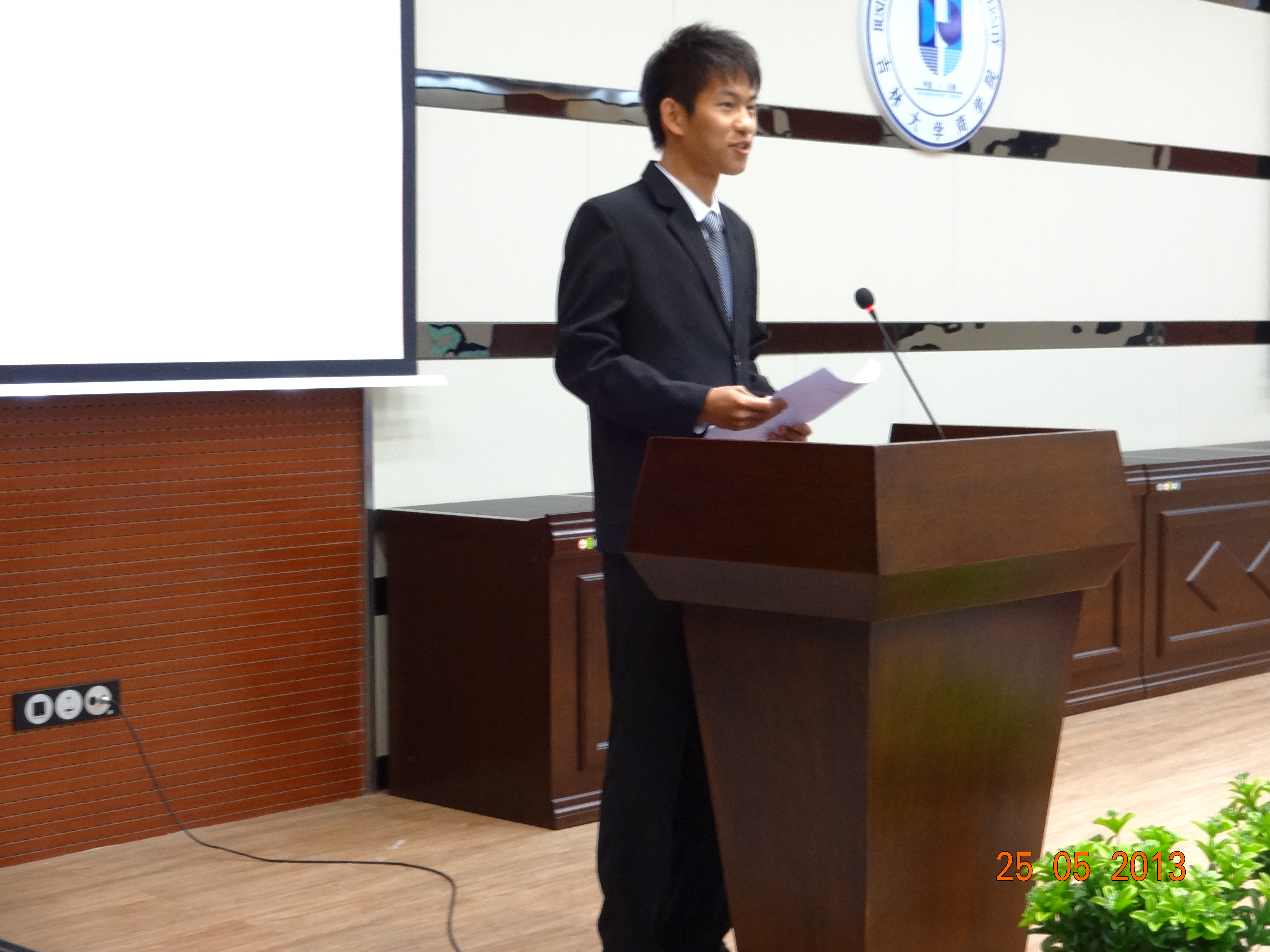 最后长春大学管理学院12级工商管理系王振宇同学代表所有参赛选手进行了发言。他说,沙盘对抗所展现出的不仅仅是同学们在企业管理、经营决策方面的才干与智慧,更重要的是大家挥洒了青春与活力,将敢于拼搏、勇争第一的豪情充分释放。