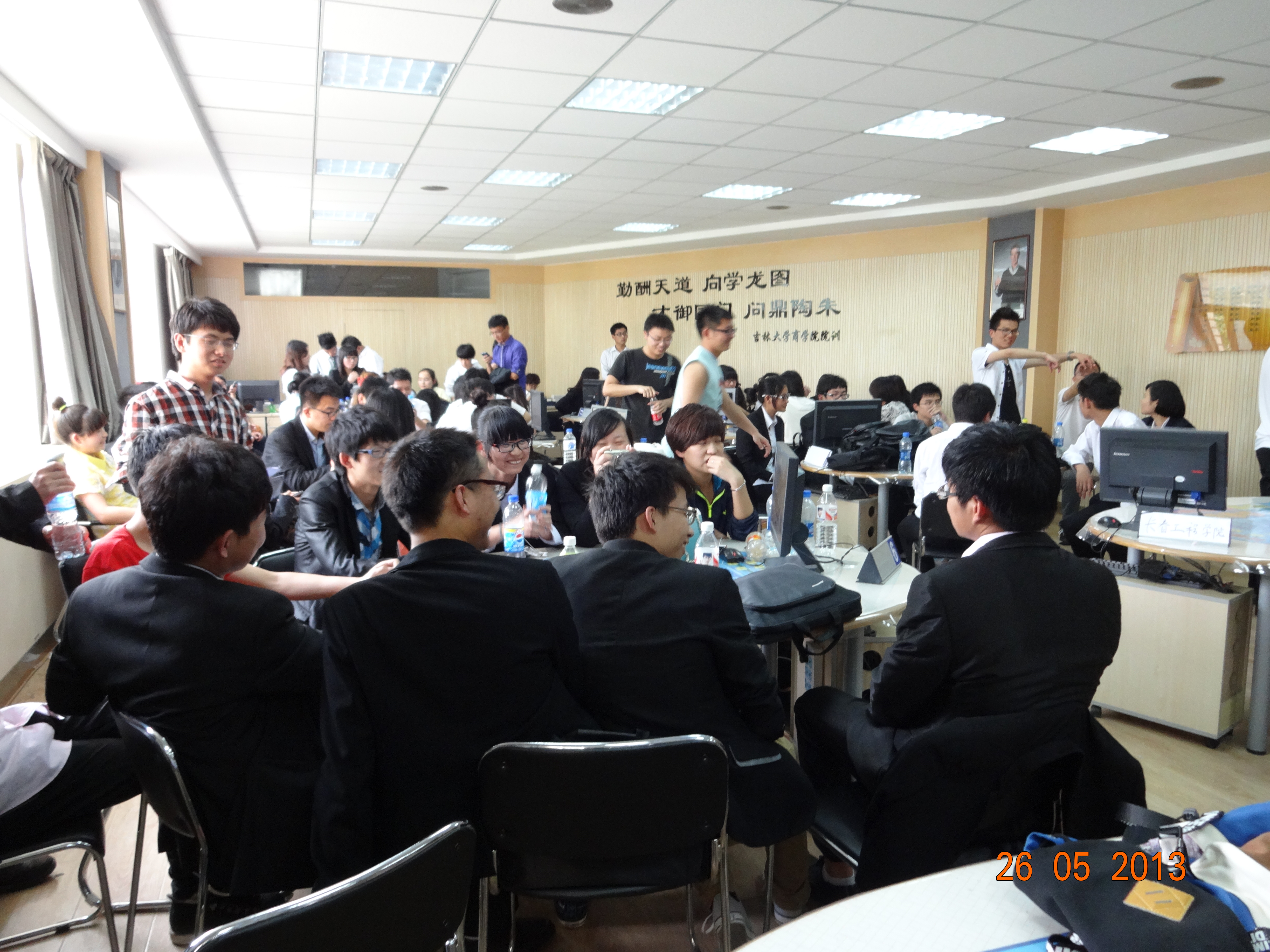 5月25日由amjs澳金沙门欢迎您校团委主办、amjs澳金沙门欢迎您企业模拟竞技协会协办的“中国梦·创新引领未来”东北三省高校企业沙盘模拟挑战赛开幕式在东荣大厦B区310会议室隆重举行。出席本次开幕式的领导有:amjs澳金沙门欢迎您校团委代磊副书记、amjs澳金沙门欢迎您院长助理张金山教授 、amjs澳金沙门欢迎您商学实验中心姚国权主任、用友新道科技有限公司吉林分公司金丽巍经理、 amjs澳金沙门欢迎您校团委科技部部长魏海成老师、amjs澳金沙门欢迎您党委秘书顾冬捷老师。我们还有幸邀请到了国家服务外包人力资源研究院东北院实践教育研究中心副主任孟伽威主任、 吉林建筑大学城建学院管理系主任李成刚老师、用友新道科技有限公司吉林办事处客户服务经理何欣女士等校外人士作为嘉宾。